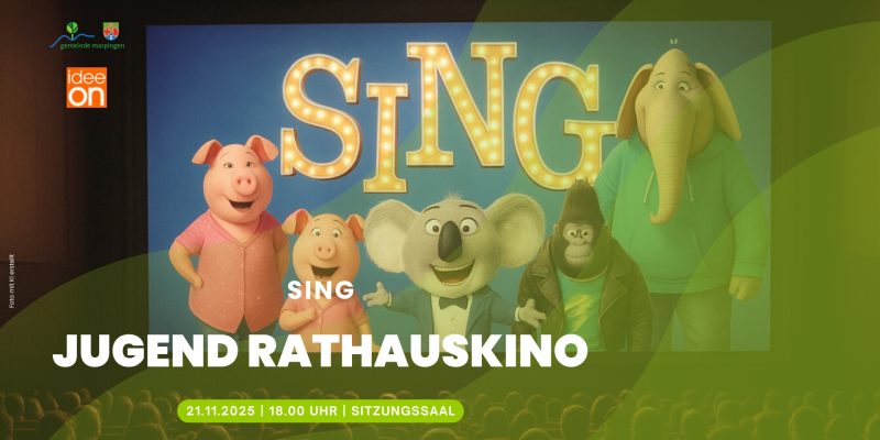 Zum Jugend Rathauskino am Freitag den 21.11.2025 ab 18:00 Uhr zeigen wir euch den Film „Sing“ von 2016.