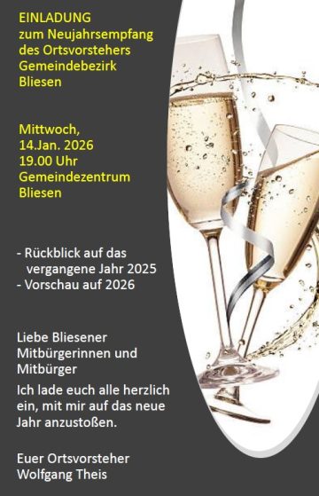 EINLADUNG zum Neujahrsempfang des Ortsvorstehers Gemeindebezirk Bliesen