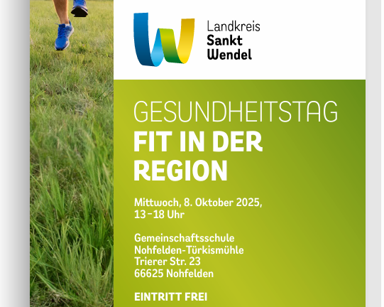 Zum fünften Mal heißt es »Fit in der Region« – der Gesund heitstag des Vereins »Region Vital St. Wendeler Land« geht in die nächste Runde. Mitorganisiert vom Gesundheitsamt und der…