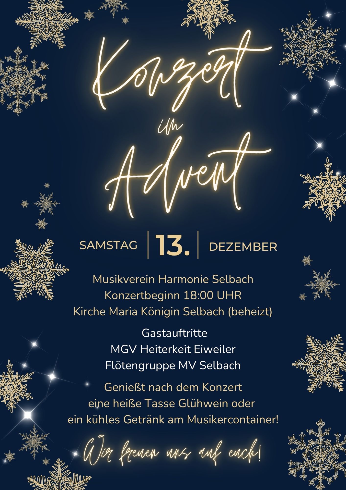 Konzert im Advent Der Musikverein Harmonie Selbach lädt Sie herzlich zum Konzert im Advent am 13. Dezember 2025 um 18:00 Uhr in die Kirche Maria Königin ein. Tauchen Sie in…