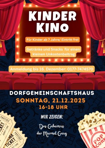 🎬Es ist mal wieder soweit – wir laden alle Kinder, natürlich auch aus den Nachbarorten, ganz herzlich zu unserem nächsten Kinderkino-Nachmittag ein!
