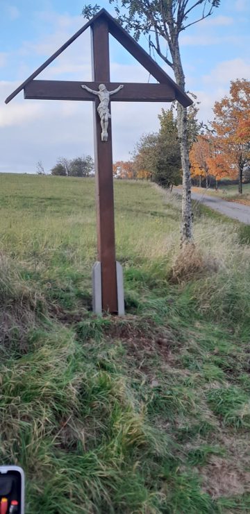 Das Kreuz wurde kürzlich vollständig erneuert, da es stark verwittert und marode war.