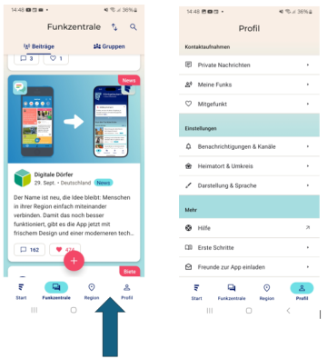 Für diejenigen, die sich die neue App schon runtergeladen haben, hier zum Einstieg ein wichtiger Hinweis zum Einstellen eures Radius für die eingehenden Beiträge: